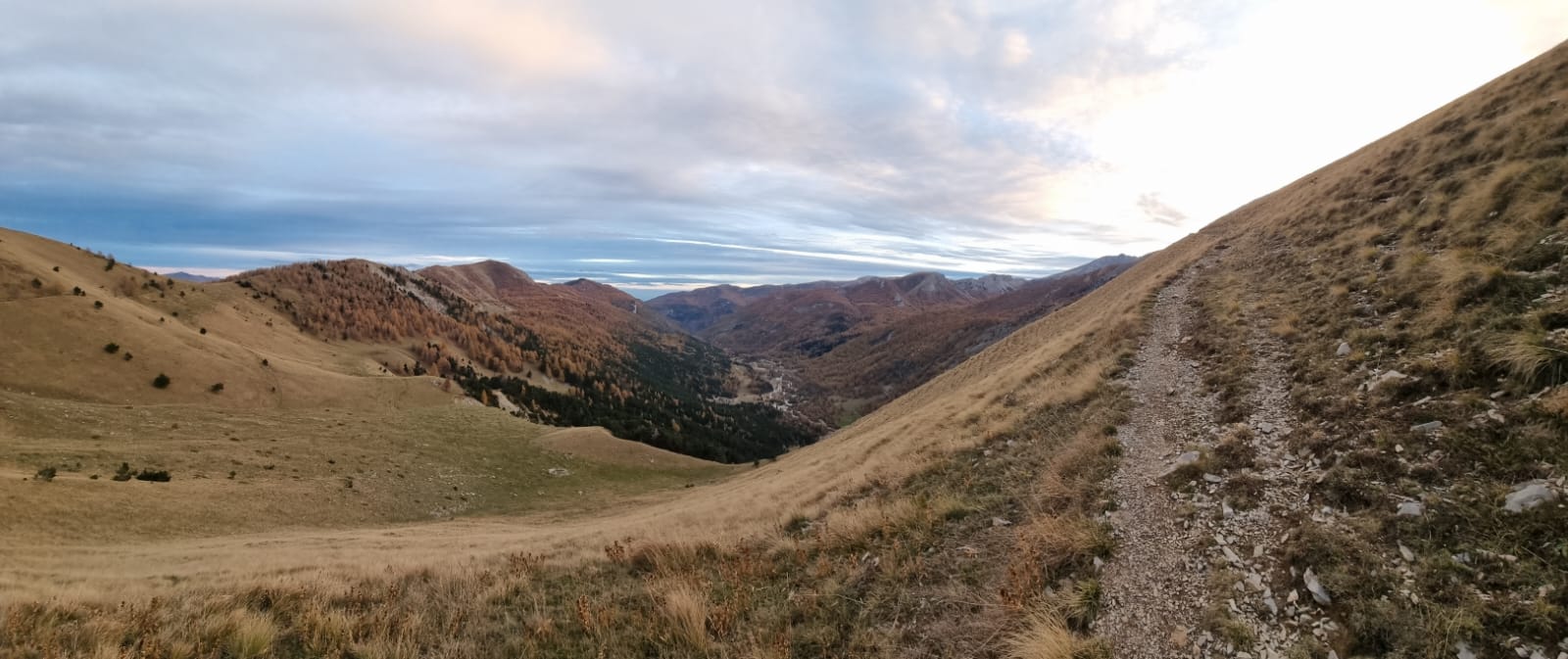 Alors que la fin d’après-midi annonçait une soirée agréable au coin du feu, nous avons décidé de faire une dernière randonnée en soirée, une sorte d’au revoir à ces montagnes que nous allions quitter pour quelques semaines. Le ciel virait au rose, teintant les sommets d'une lumière douce et dorée. L’air était déjà vif, annonçant l’hiver tout proche.