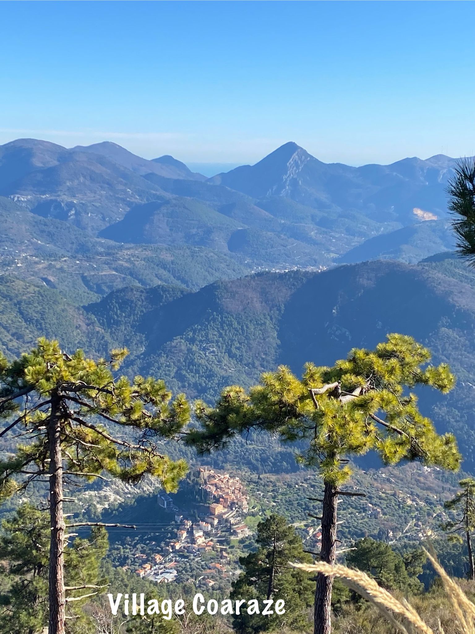 Tout au long du parcours, nous avons découvert des magnifiques paysages. Une superposition harmonieuse des chaînes montagneuses, dont les sommets enneigés créaient un joli dégradé de couleurs. Sous une météo clémente, la mer scintillait sous les rayons dorés du soleil. En chemin, nous avons aperçu plusieurs villages perchés sur les collines, dont Coaraze, classé parmi les plus beaux villages de France et célèbre pour ses légendes.