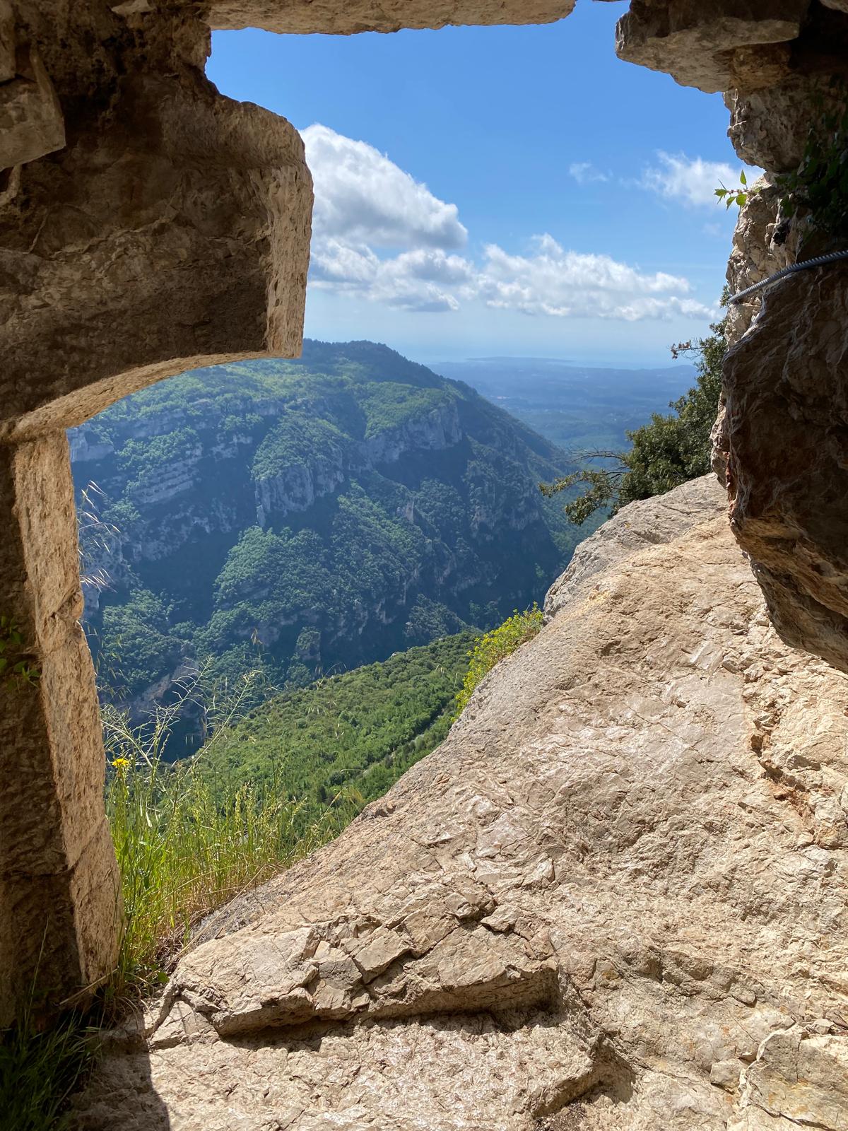 L’un des moments forts du parcours est l’incursion vers la forteresse troglodyte de Gourdon, nichée dans les falaises. Tout au long des trois parcours, les points de vue sont spectaculaires : vallée du Loup, mer Méditerranée, sommets alpins…