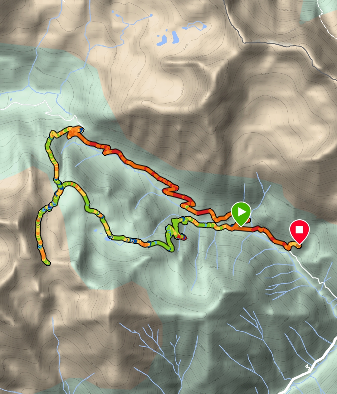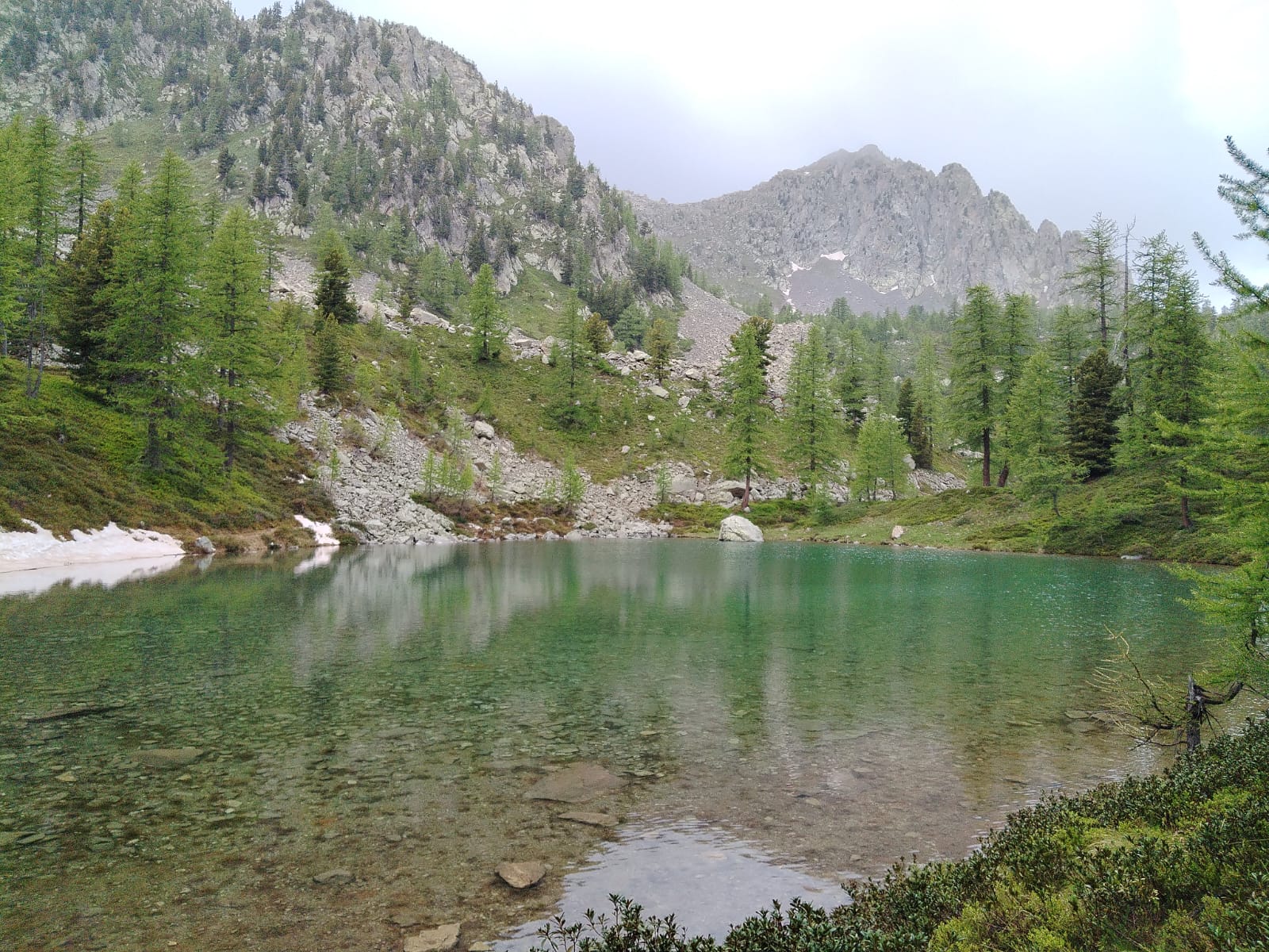 Le refuge offre à tous une pause pour admirer la nature et poursuivre vers le lac des Adus, à 2140m, sous la cime de la valette et le mont Archas. L’eau est claire et d’un vert émeraude. L’ambiance pluvieuse ne nous tente pas à s'attarder et à tremper les pieds.