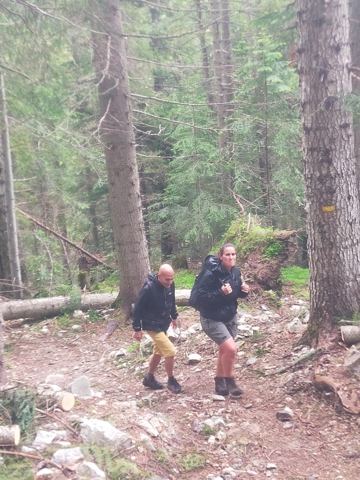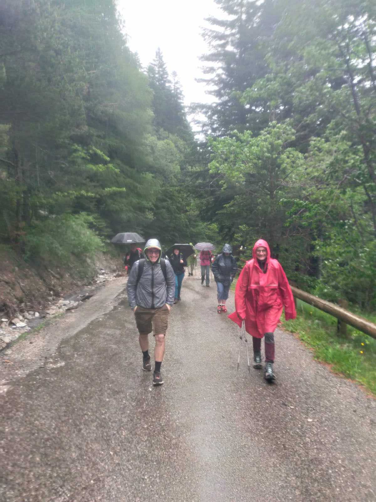 La montée se fait chaque groupe à son rythme, par le sentier dit des "chasseurs", la pente est raide et assez chaotique mais à l’abri des arbres elle nous permet de ne pas trop ressentir la pluie.