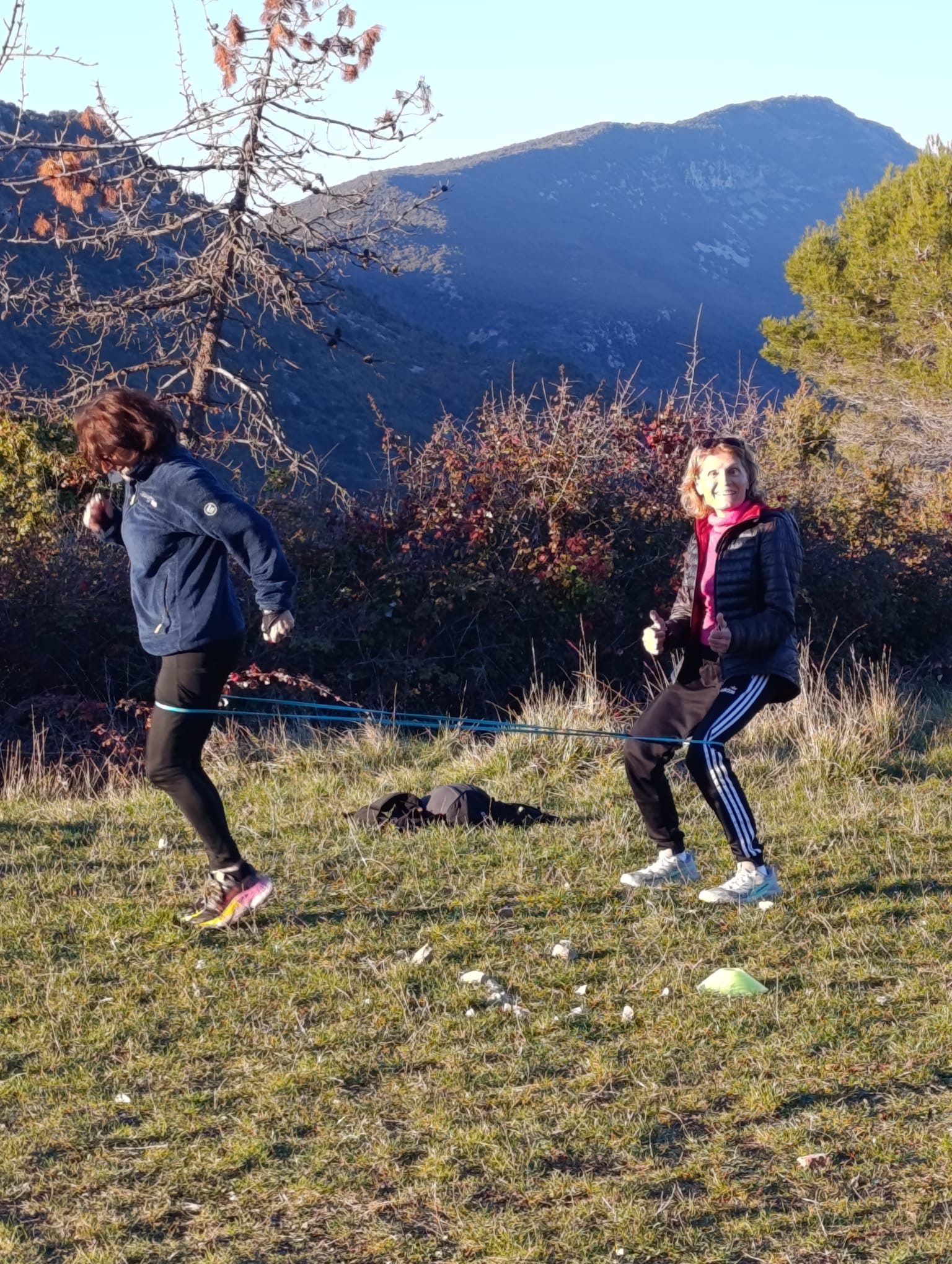 Ce matin, nous avons pris le temps d’arriver tranquillement au Mont Macaron. Sur place, une jolie plaine, dominée par les ruines du Châteauneuf, nous attendait. Nous étions là, déterminés à relever tous les défis. La séance a débuté par une mise en route dynamique et entraînante en musique, suivie d’une marche tonique, un excellent remède après les fêtes !