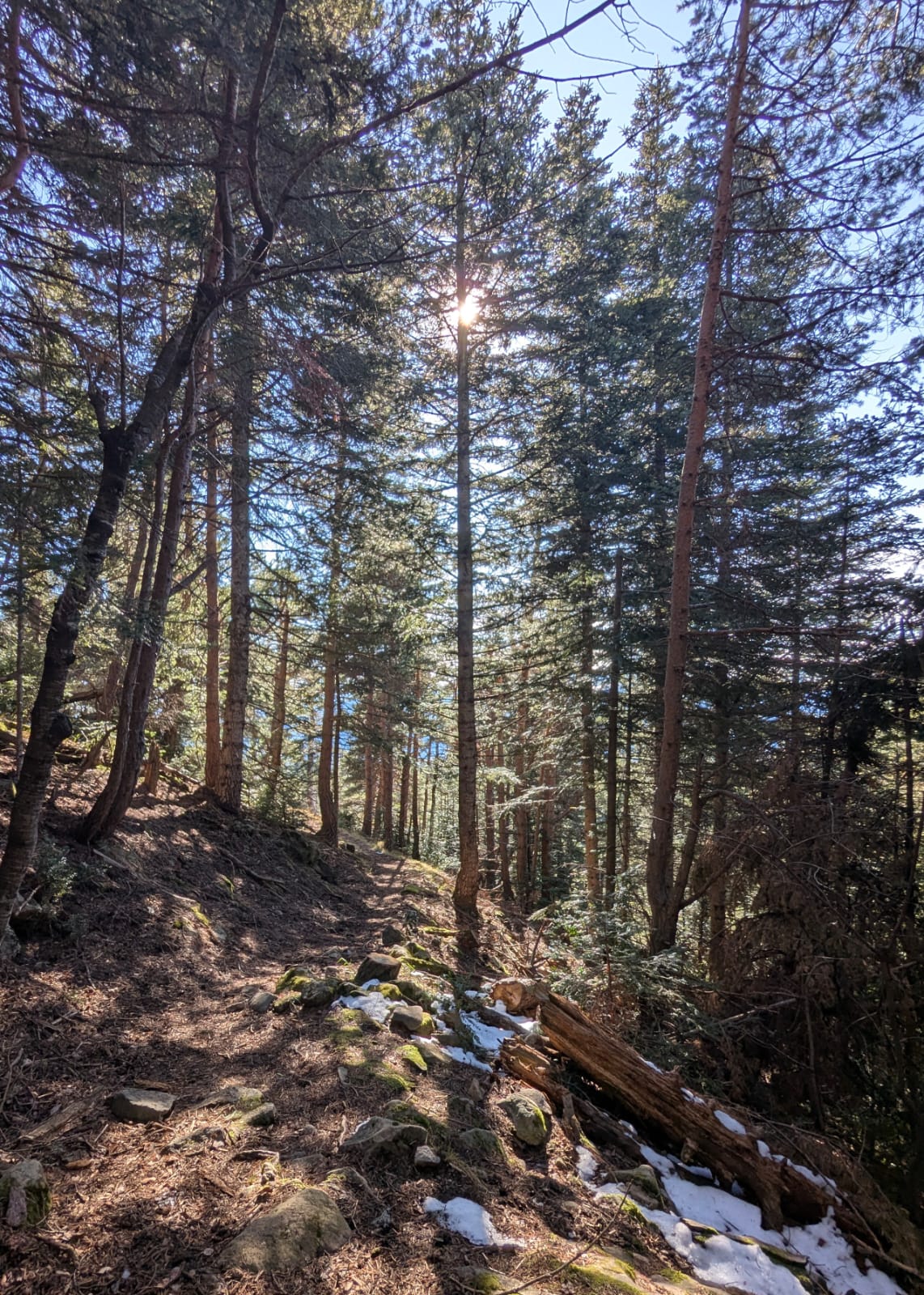 Nous avons traversé une végétation méditerranéenne, des pins, de la lavande, des genêts, du thym, parsemés de neige ❄☀