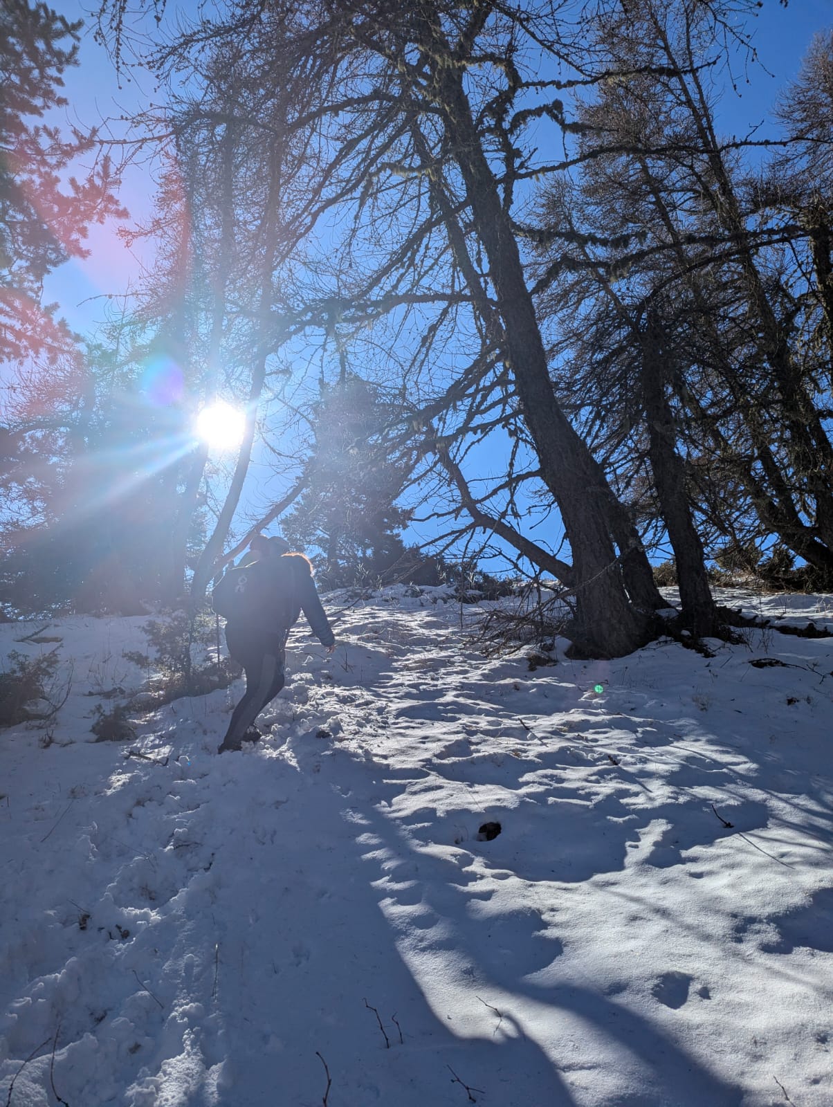 Puis le plein soleil, et la neige, tous deux bien plus présents qu'attendu, cette dernière nous invitant à modifier notre plan de marche pour ne faire "que" 635D+ pour une dizaine de kms, certain(e)s n'ont pas regretté les 900 annoncés 😂