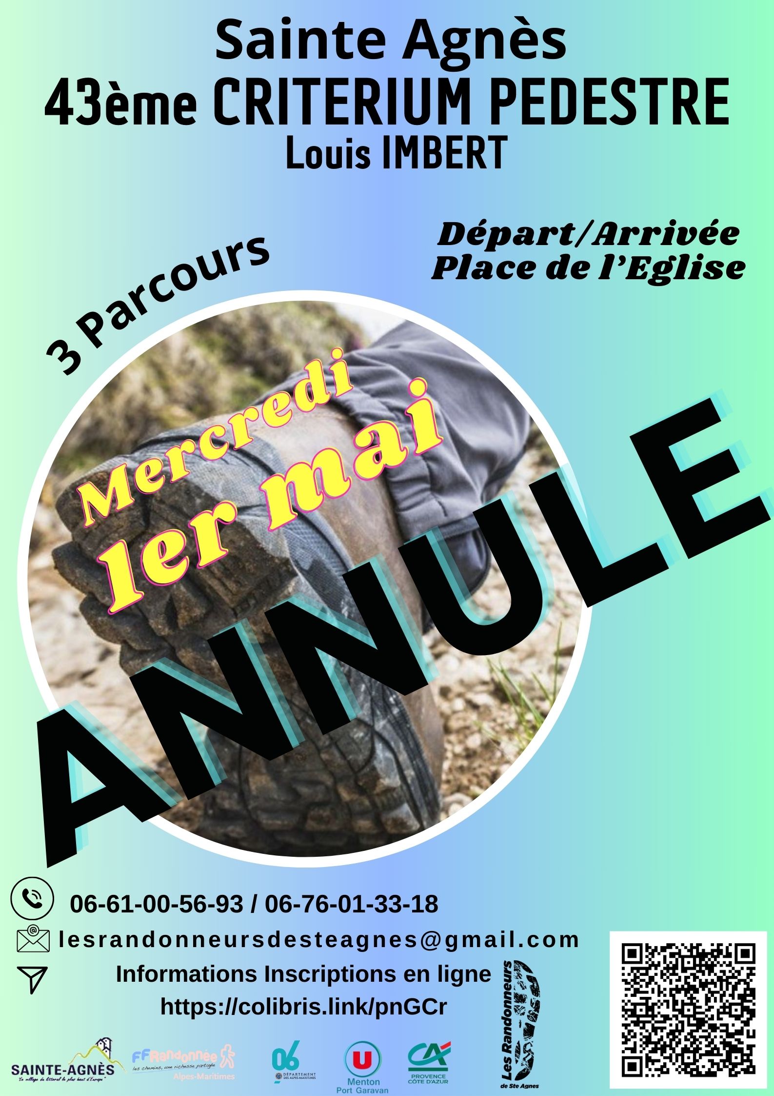 En raison du mauvais temps annoncé mercredi 1er mai, nous sommes contraints d'annuler le 43ème Critérium de Sainte Agnès